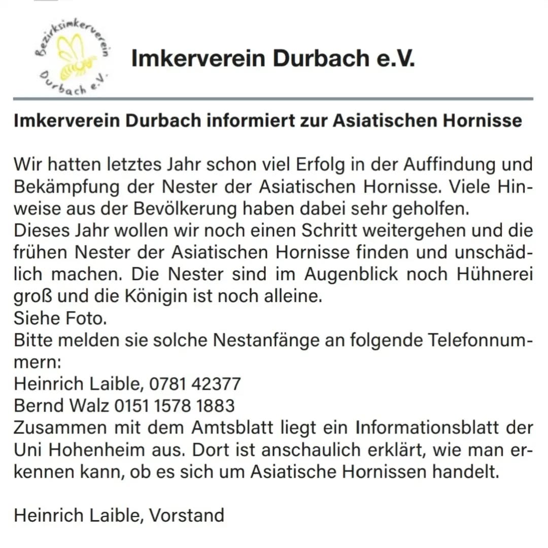Wichtige Telefonnummern und Adressen der Gemeinde Durbach, für Notfälle und verschiedene Gesundheitsdienste (bitte klicken) Stand: 12/2025 |