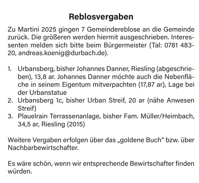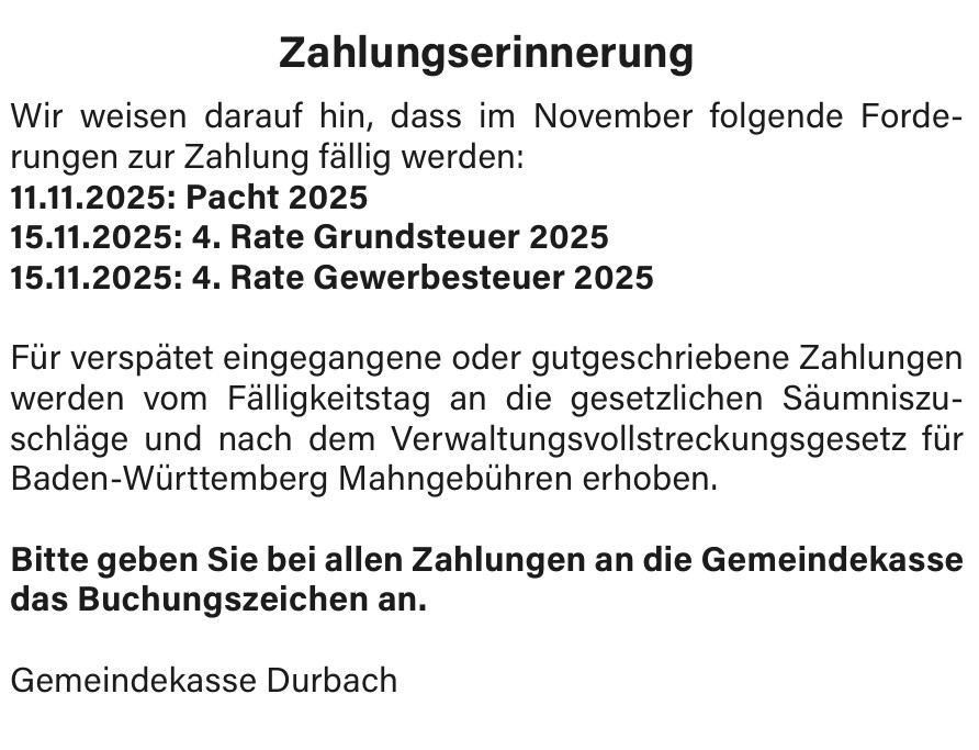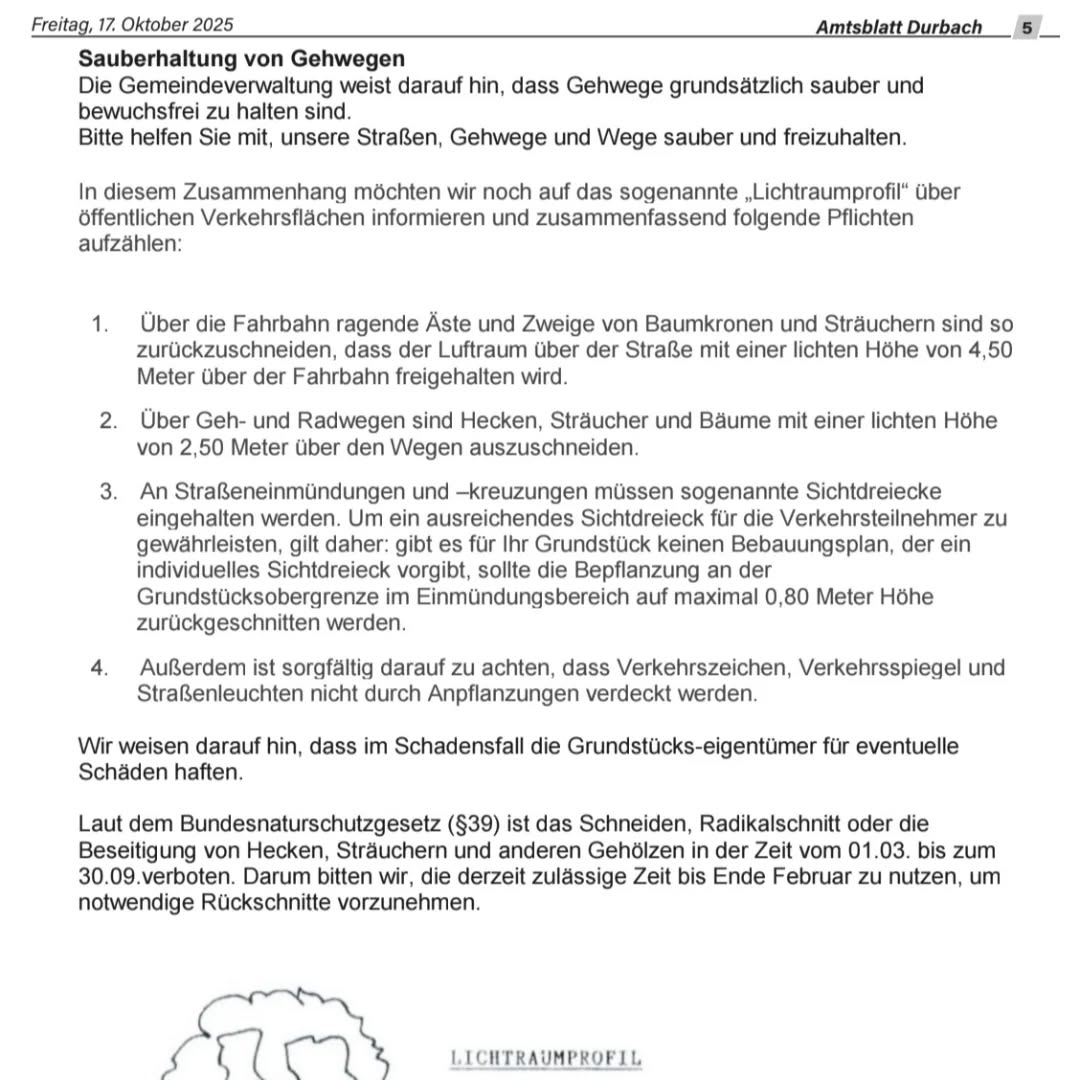 Aus dem Amtsblatt der Gemeinde Durbach - Sauberhaltung