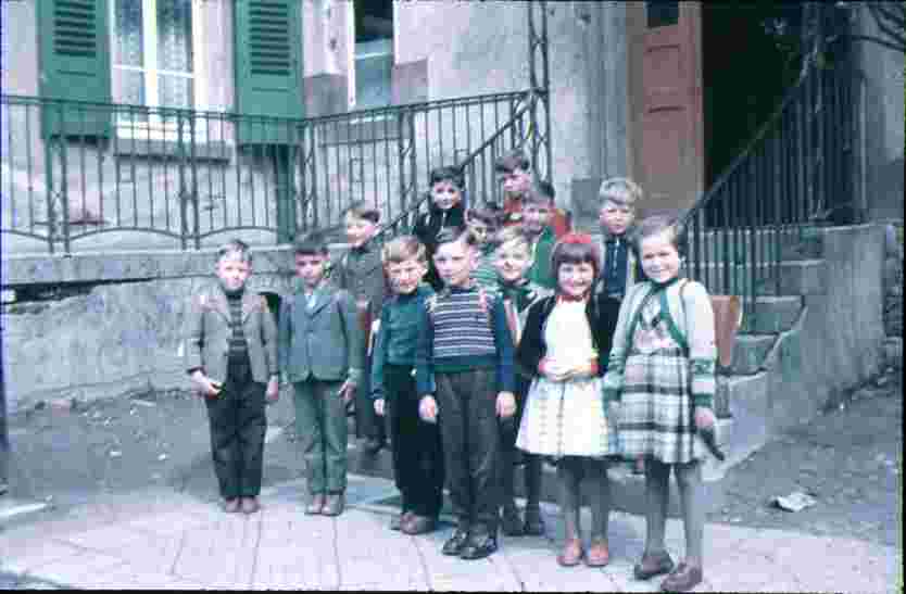 Ebersweierer "Erschtbibili" am Schulanfang ![]() Auf dem Foto von damals, die Schulanfänger aus dem Jahr 1957 auf dem Rathausplatz, vor der alten Schule in Ebersweier, heute das Haus der Vereine. |