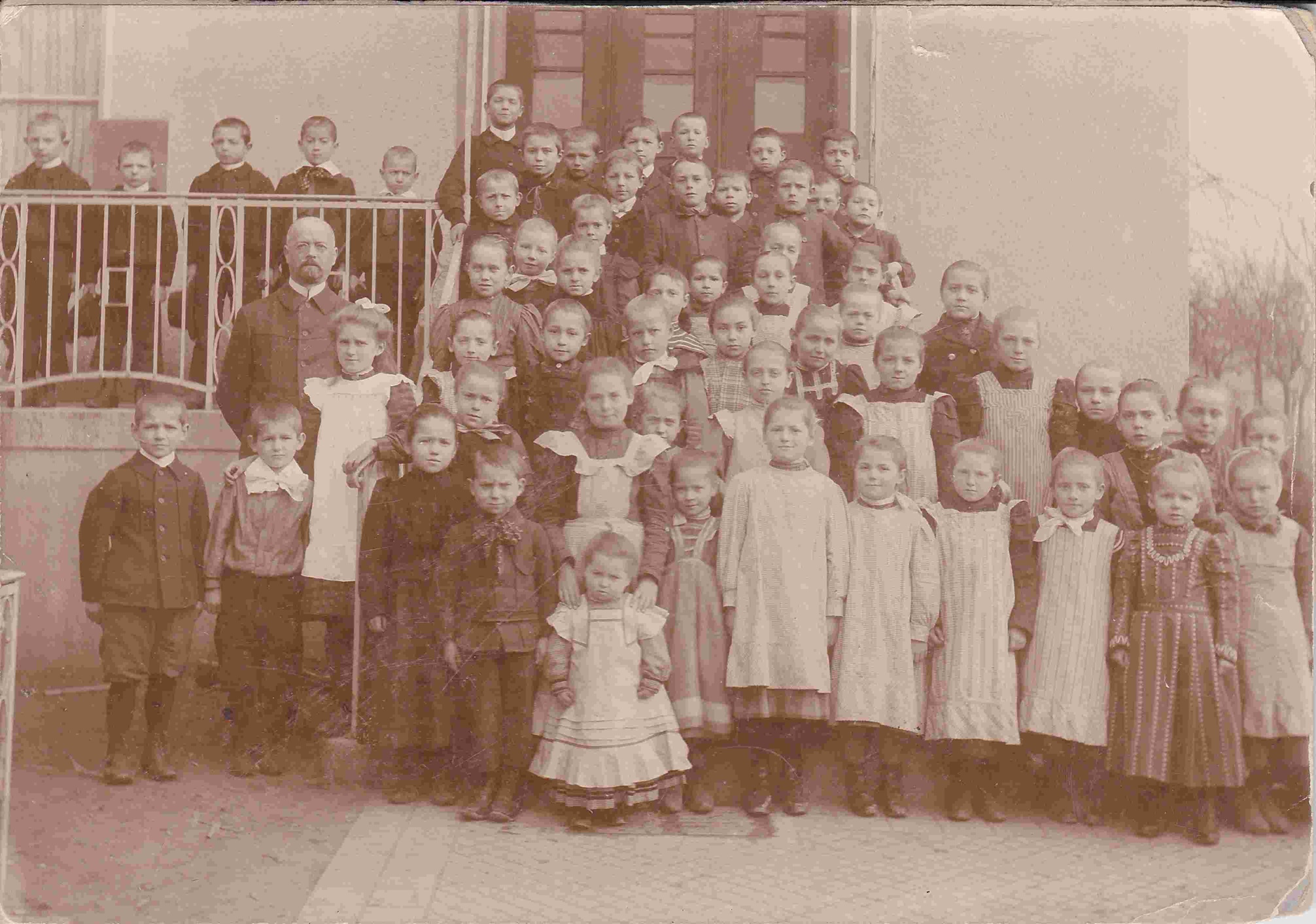 Der Schulhofbrunnen im Jahr 1907 Der Schulhofbrunnen im ehemaligen Schulhof von Ebersweier zwischen dem Rathaus und dem heutigen Haus der Vereine. Die Aufnahme datiert auf den 2. August 1907. Heute kann man noch den Standort des Brunnens auf dem Rathausplatz an seiner geringfügigen Absenkung im Plattenbelag erkennen. |