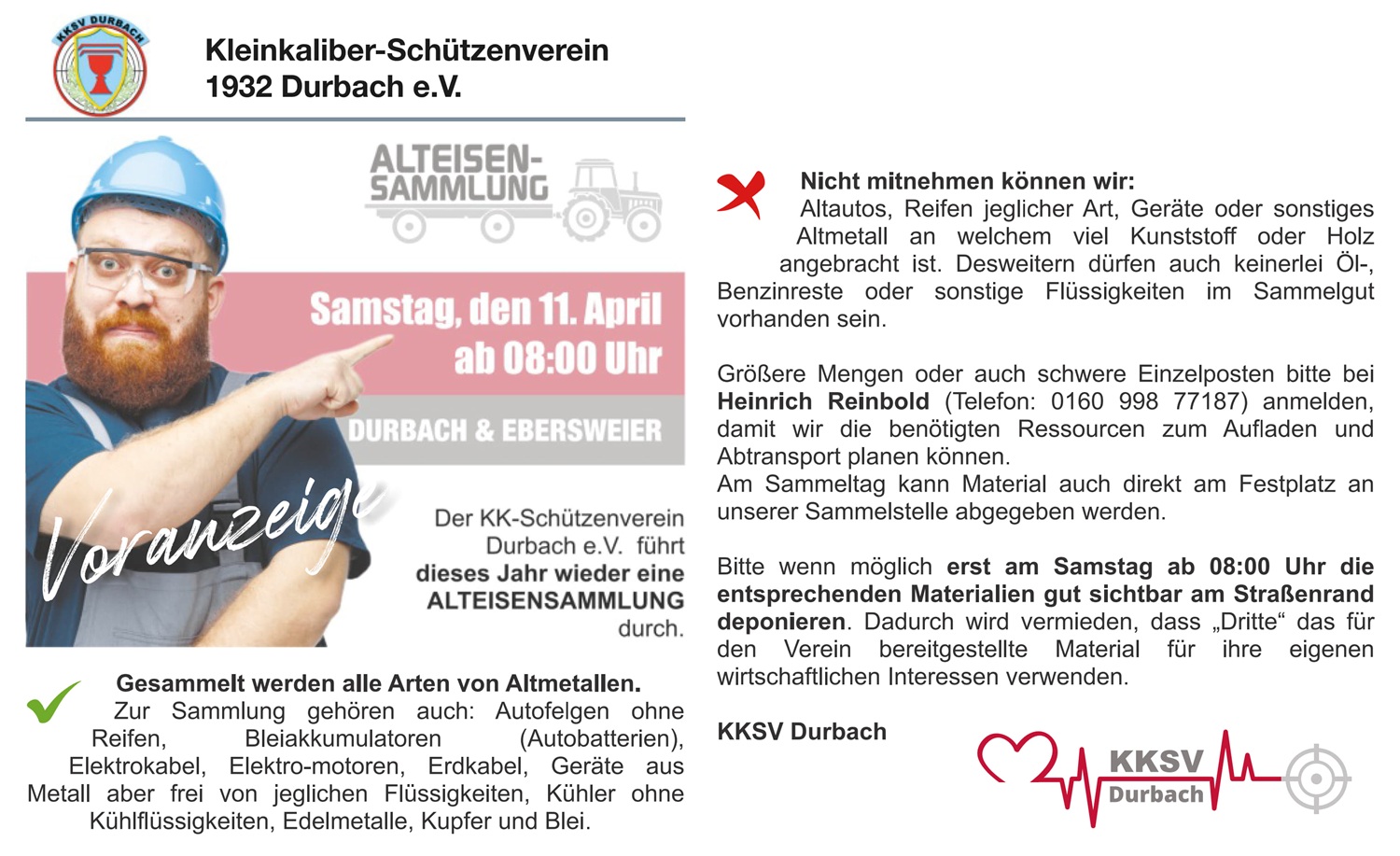 Samstag, 11.04.2026, ab 8.00 Uhr,