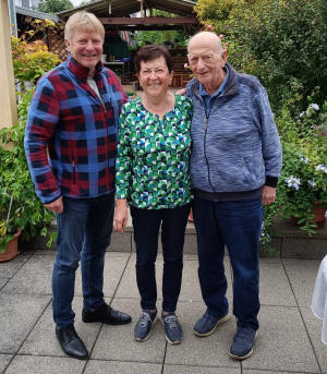 Hochzeit. ![]() Ortsvorsteher Horst Zentner überbrachte die Glückwünsche der Gemeinde Durbach, verbunden mit dem herzlichen Dank für ihr außergewöhnliches ehrenamtliches Engagement für die Dorfgemeinschaft. Die Hochzeit fand vor 60 Jahren in Windschläg statt, weil die Pfarrkirche in Ebersweier umgebaut wurde. Anschließend wurde groß, mit einer öffentlichen Hochzeit, im Gasthaus "Zur Krone" gefeiert. Der Hochzeitstag war auch der Einzugstag des jungen Paares in das neue Haus in der Schulstraße, in dem die Beiden noch heute glücklich wohnen. |
