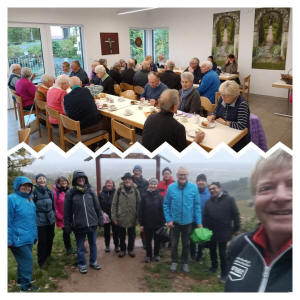 Fußwallfahrt nach St. Wendel![]() Die Ebersweierer Fußwallfahrer trotzten am führen Samstagmorgen des 25. Oktober 2025 dem nasskalten Herbstwetter und erfüllten wieder einmal mehr das alte Gelübde. 13 Pilgerer trafen sich morgens um 6.45 Uhr am Bildstöckle am Stöckweg und machten sich, trotz widrigen Wetterverhältnissen, per pedes auf zur Wallfahrtskapelle St. Wendelin in Oberkirch-Bottenau. Wanderführer Markus Lienert hatte eine neue Wegstrecke über Wiedergrün und über die Höhen nach St. Wendel geplant. Die Fußwallfahrer wurden nach Sonnenaufgang mit herrlichen Ausblicken in die Rheinebene und Gottes wunderbare Natur belohnt. Viele Pkw-Wallfahrer schlossen sich vor Ort der Pilgergruppe an und feierten n der gut gefüllten barocken Kapelle den Gottesdienst. |