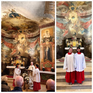 ![]() Pfarrer Vogt erklärte die 2024 umfassend restaurierte Wandmalerei in Bezug auf den Hl. Wendel im 1756 erstmalig erwähnten Gotteshaus. Außerdem lobte er die vielen Ebersweierer für die Beharrlichkeit ihr Gelöbnis über drei Jahrhunderte immer wieder einzulösen. Den Abschluss fand die Wallfahrt traditionell mit dem Kirchenchor Bottenau und einem Frühstück sowie einem stärkenden Mittagessen im Gasthaus Engel in Nesselried. |