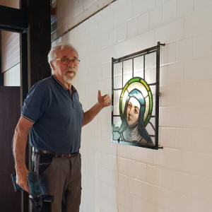 tollen Blickfang![]() Die Einsegnungshalle Ebersweier beherbergt nun ein Bleiglasbild der Hl. Theresia von Lisieux und das Bildstöckle in den Stöcken erstrahlt wieder in altem Glanz. Die Mitglieder der Vorstandschaft suchten schon länger einen Platz für das historische Glasbild. Es sollte dauerhaft für die Bevölkerung zugänglich gemacht werden. Arnold Männle und Horst Zentner montierten nun das hinterleuchtete Bildnis aus Bleiglas. |