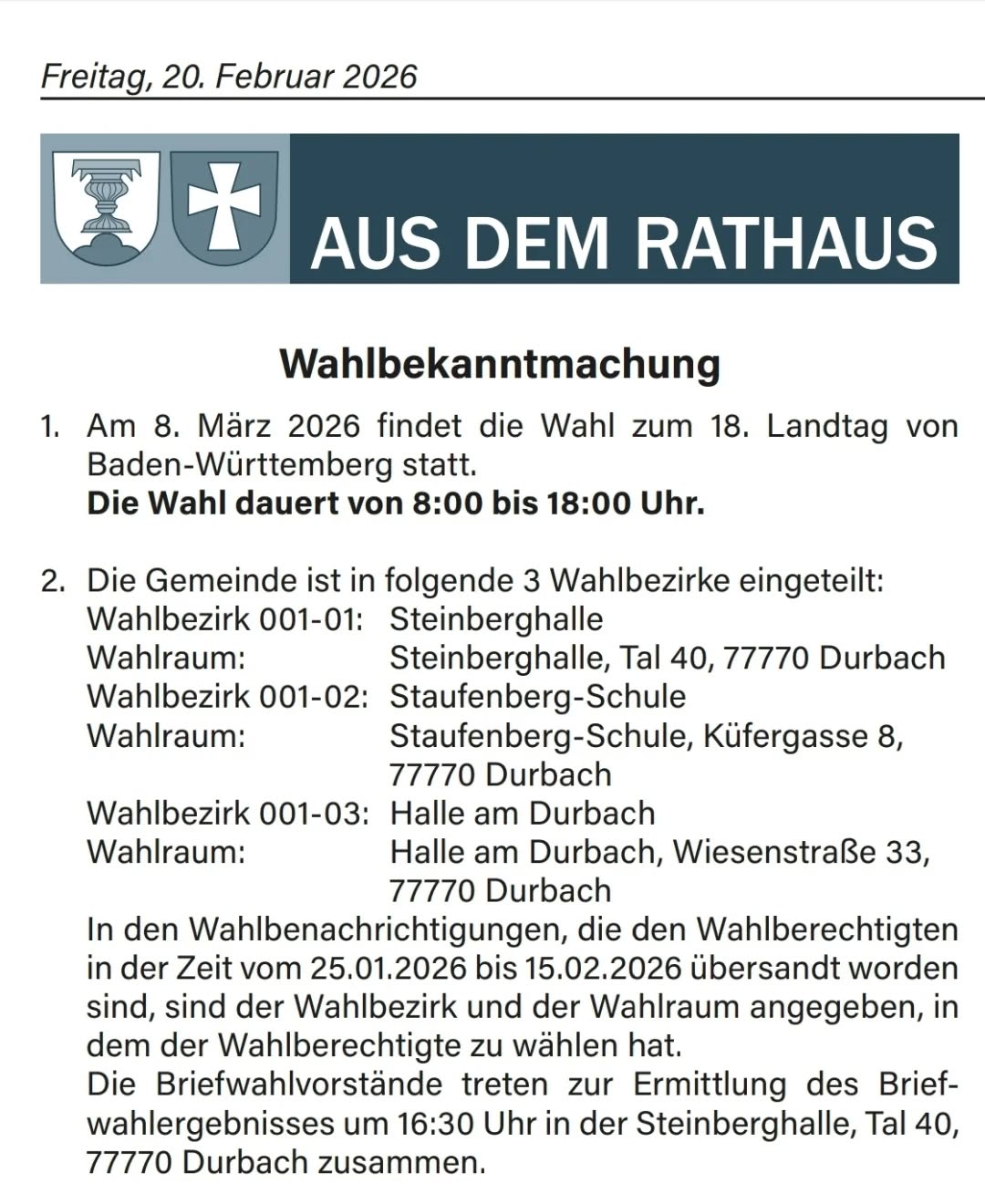 Aus dem Amtsblatt der Gemeinde Durbach - Sauberhaltung