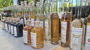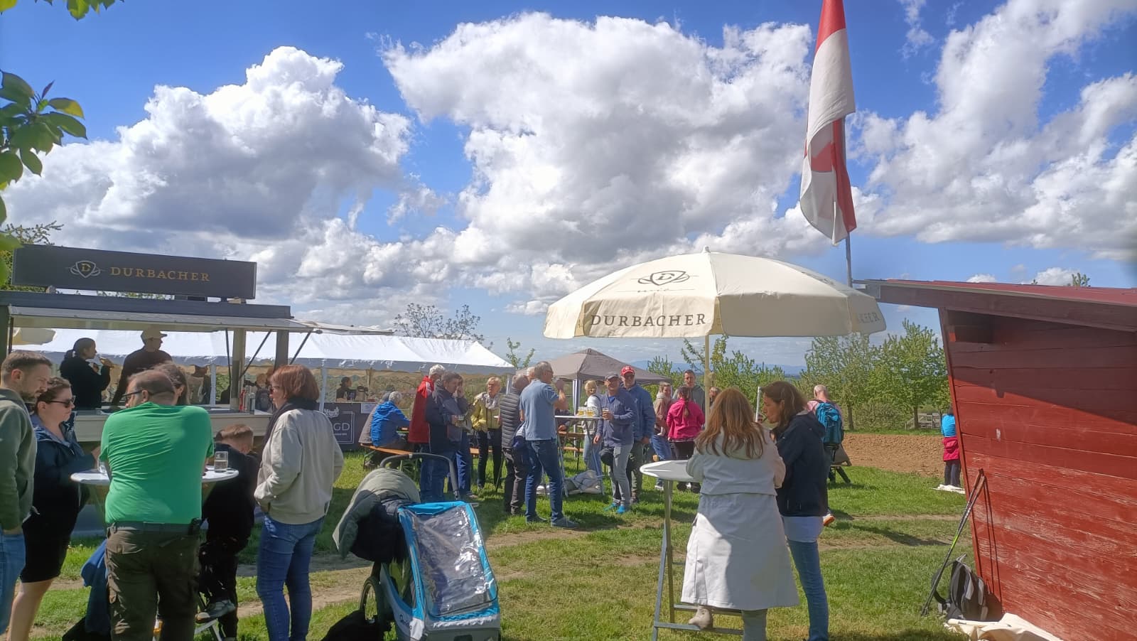 mit einem Sektempfang den Ebersweirer Blütenwandertag vor der Halle am Durbach.