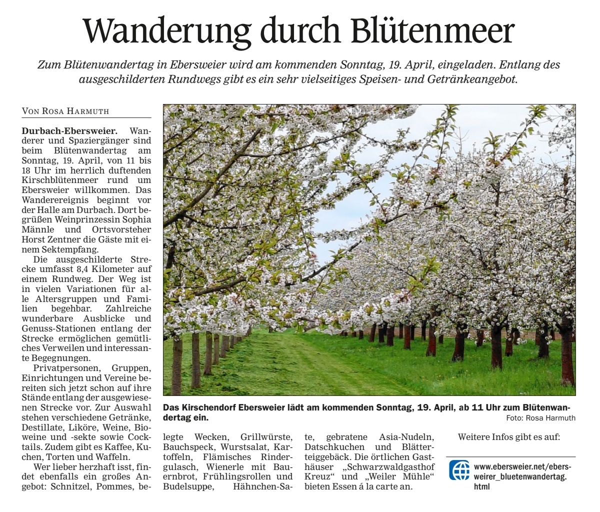Blütenwandertag 2026 rund um Ebersweier am 19. April 2026 Klick aufs Bild für weitere Infos auf der Durbach Homepage ![]() ![]() |